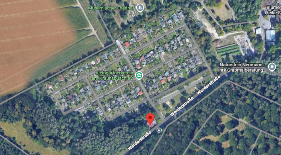 Die Anschrift vom KGV Kraunsbusch lautet: Werderstraße 52, 38448 Wolfsburg.