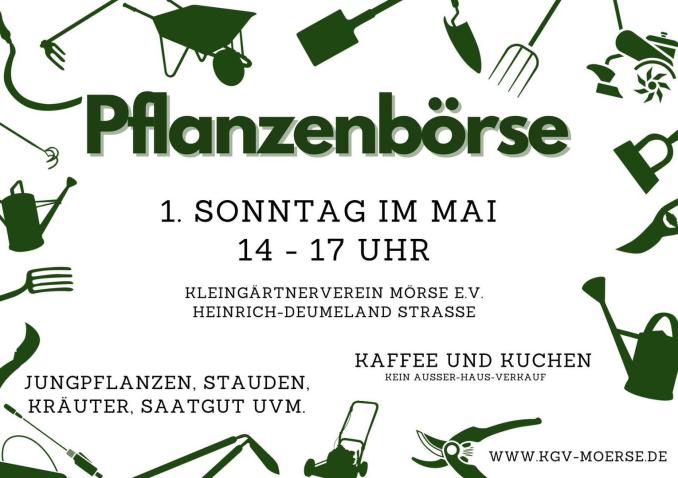 Am ersten Sonntag im Mai (03.05.2026) findet im KGV Mörse die jährliche Pflanzenbörse statt. Ein Besuch lohnt sich.